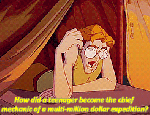 He doesn’t ask why it’s a GIRL mechanic on the expedition, only why it’s a TEENAGER. Doesn’t question Kida’s leadership and knowledge when he meets her. (I can’t think of more examples off the top of my head but I’m sure they’re there).Milo is a wonderful Disney protagonist, and this movie deserves the underground love it receives.