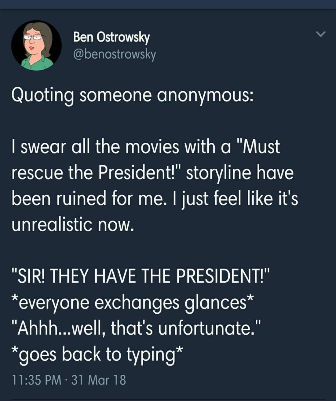 don0303 Uncategorized November 30, 2018December 9, 2018 1 Minute chaos-yet-harmony: mswyrr: ithelpstodream: lmao fuck “SIR THEY HAVE THE PRESIDENT!” “Tell them they can keep him.” Share this: Share on X (Opens in new window) X Share on Facebook (Opens in new window) Facebook Like Loading... Related Published by don0303 View all posts by don0303 Published November 30, 2018December 9, 2018